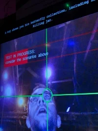 “…the artistic and technical crews complement one another seamlessly in serving the story. The carcasses of discarded computers, each once the top of the technological heap, lie in the public and playing spaces. Video screens and dark, static-filled projections convincingly allow the characters to be poke, prod, and investigate one another and to quickly snap the audience’s attention from one location to the next with a simple turn of the head. The excellent choreography of actors, stagehands, and crew sustains the needed illusions through split-second timing….Coherent visuals, sound, and design language – typical of Theatre Movement Bazaar, City Garage, and the late, lamented Collective – make or break works like this and could not have been easy.”