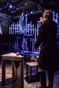 “Coming in to the Sacred Fools’ theatre the audience is immediately impressed by the shadowy and artful set of DeAnne Millais, which serves as an inkling of things to come...